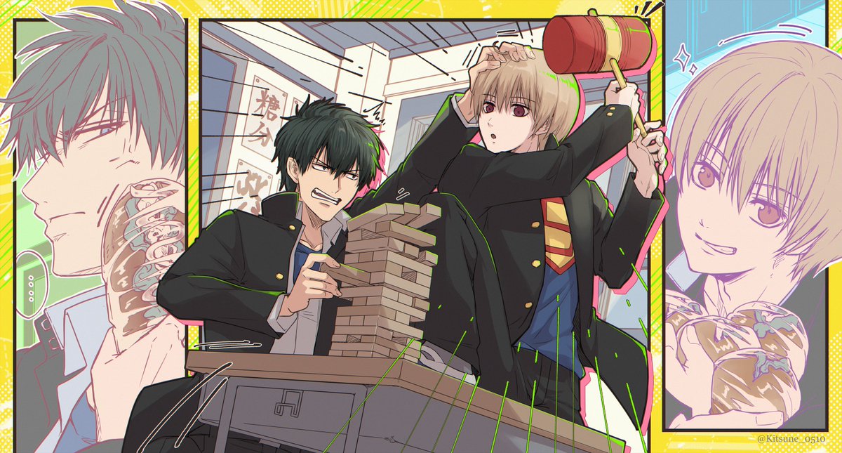 ハッピー土沖真ん中バースデー!!💚🧡 肉片さん(@000mayo0000)と、お祝い土沖ちゃん合作しました〜!🦊🍖 それぞれが好きな土沖シーン描きましたが描ききれませんでした!土沖すごい!!💚🧡 #土沖真ん中バースデー