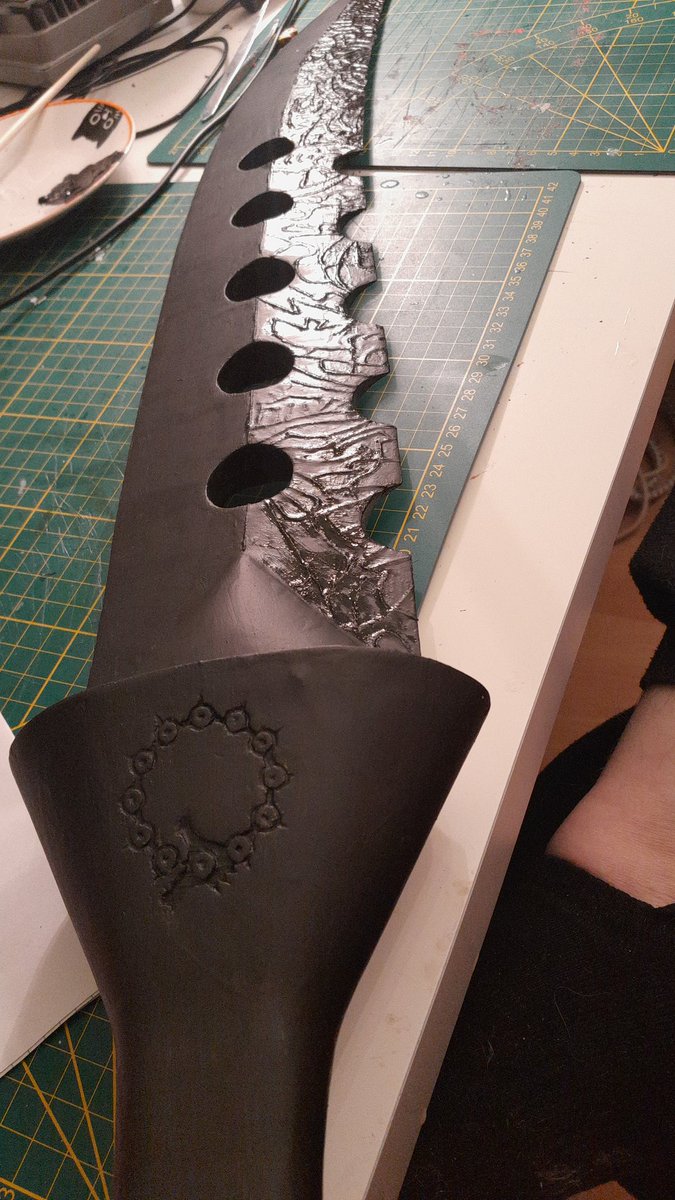 Nach einer weiteren Schicht UV Harz (über die ganze maserierte Seite) und ein leichtes abschleifen um es glatter zum Anfassen zu machen nun auch mit Gesso grundiert.... heute Seite 2 #cosplay #SevenDeadlySins #Meliodas #replika #sword #3ddruck #3Dprinted