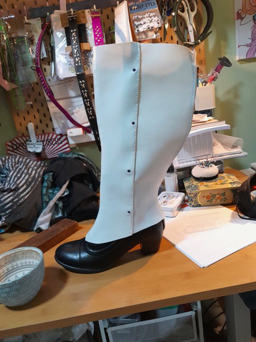 Wooohooo the outsides of my scabbards for my daggers fit on my scrap piece from collar making. Purrfect. Only the pieces for the hight to go. #cosplay #ecg2023 #IAmNobody #VanitasNoCarte #thecasestudyofvanitas