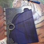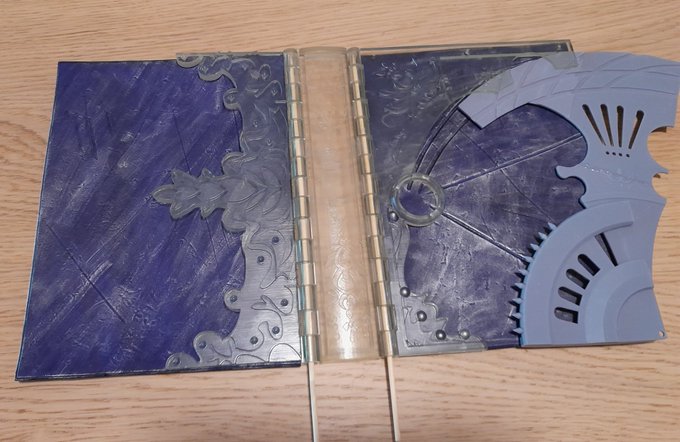 Resultat for today. Battle Nicks, damages and weathering added to the leather. Next is cutting the page a little bit better to size and adding damages to the metal Paris of the Book. #VanitasNoCarte #thecasestudyofvanitas #bookofvanitas #cosplay #e2g2023 #animemesse