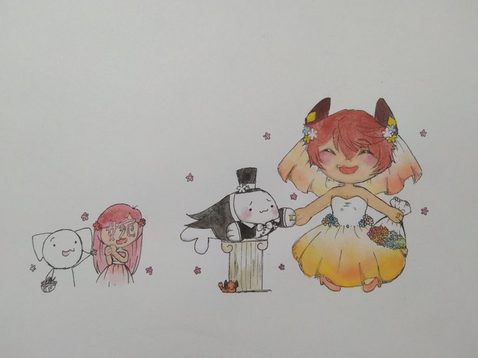 #ArtforAsa 居然可以在11/3趕出乃(。ノω\。) 祝Asa生日快樂~ 希望阿薩每一天每一年都快樂 ,開台也要注意自己的健康喔🧡 左下那只吃豆腐的.., 沒錯!就是Ko No きつね Da!! (還是要吃一下的吧www(被打 (我前世應該是花仙子吧,最近好像一直在畫花( ՞ਊ ՞)