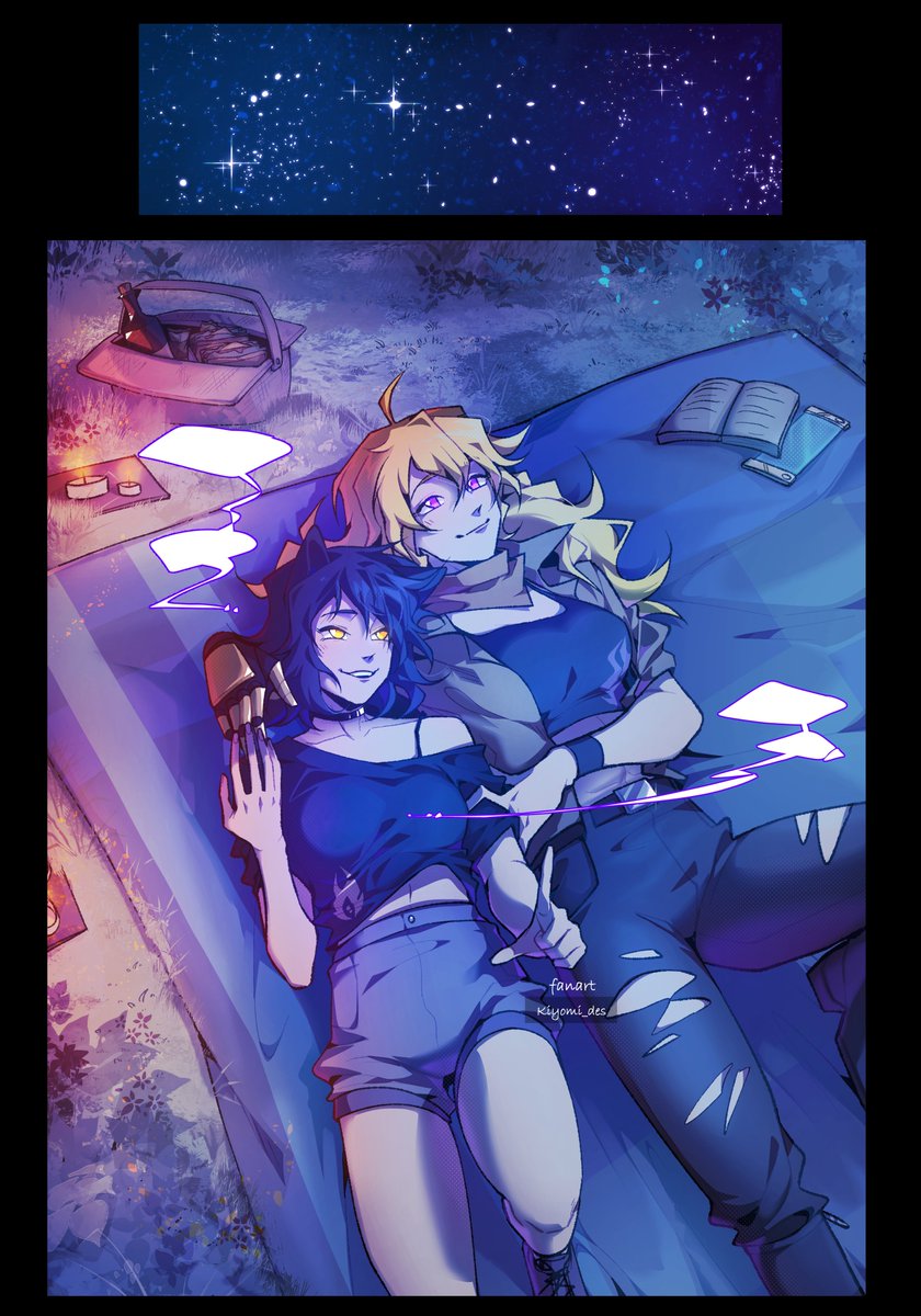 Romantically stargazing bees is something I really needed 🖤💛 #rwby #bumbleby #YangXiaoLong #BlakeBelladonna