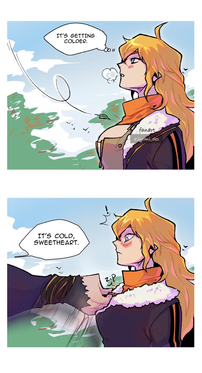 While I can't draw, I will post a thread of all the arts I made for that stripping game. First, it will be arts with the dialogues, then without ~ #bumbleby #YangXiaoLong #BlakeBelladonna #rwby