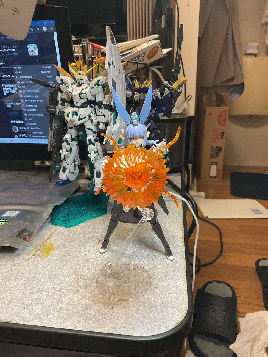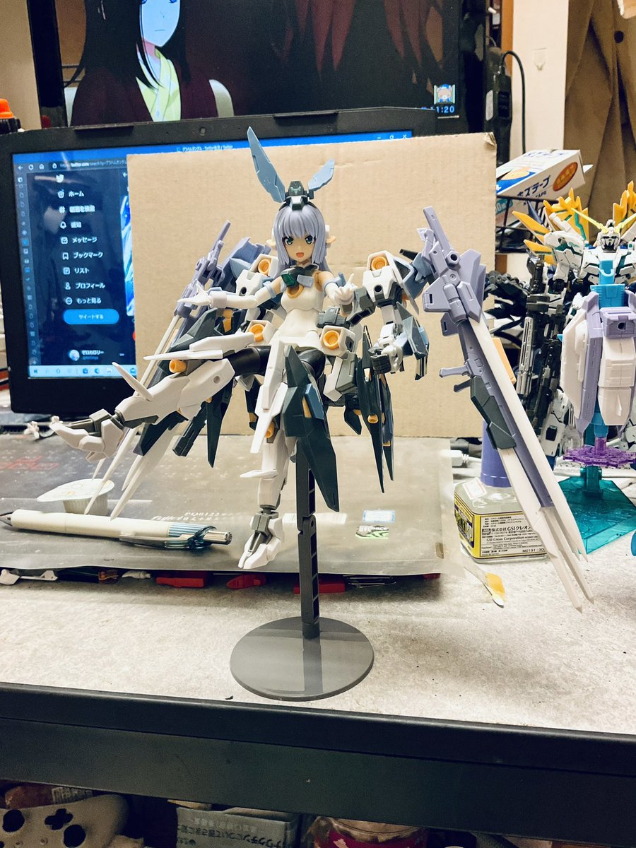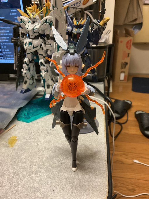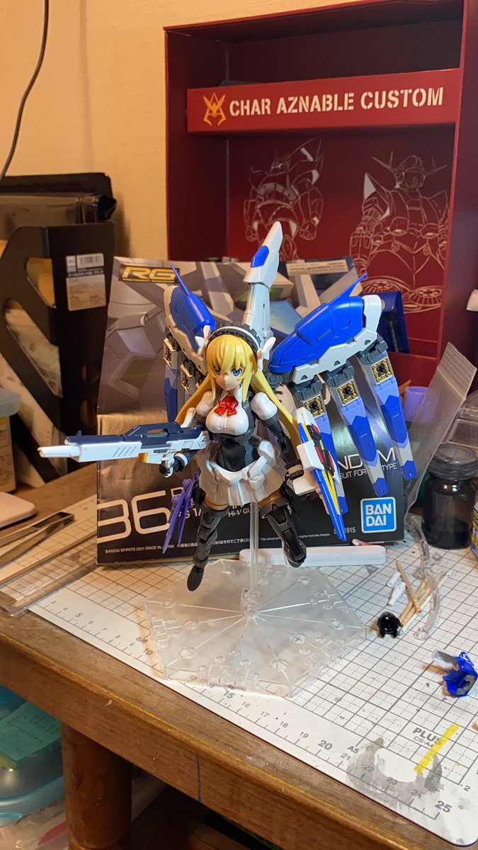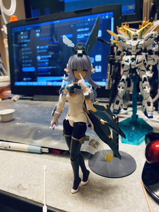 オクトバー:「大尉!これが最新のサイコミュ技術使って完成させたνガンダムですよ。この新技術のお陰で大尉の無理な納期でも間に合ったんです!」 #ガンプラの画像貼るとRTされると聞いて #水星の魔女 #ガンダムキャリバーン