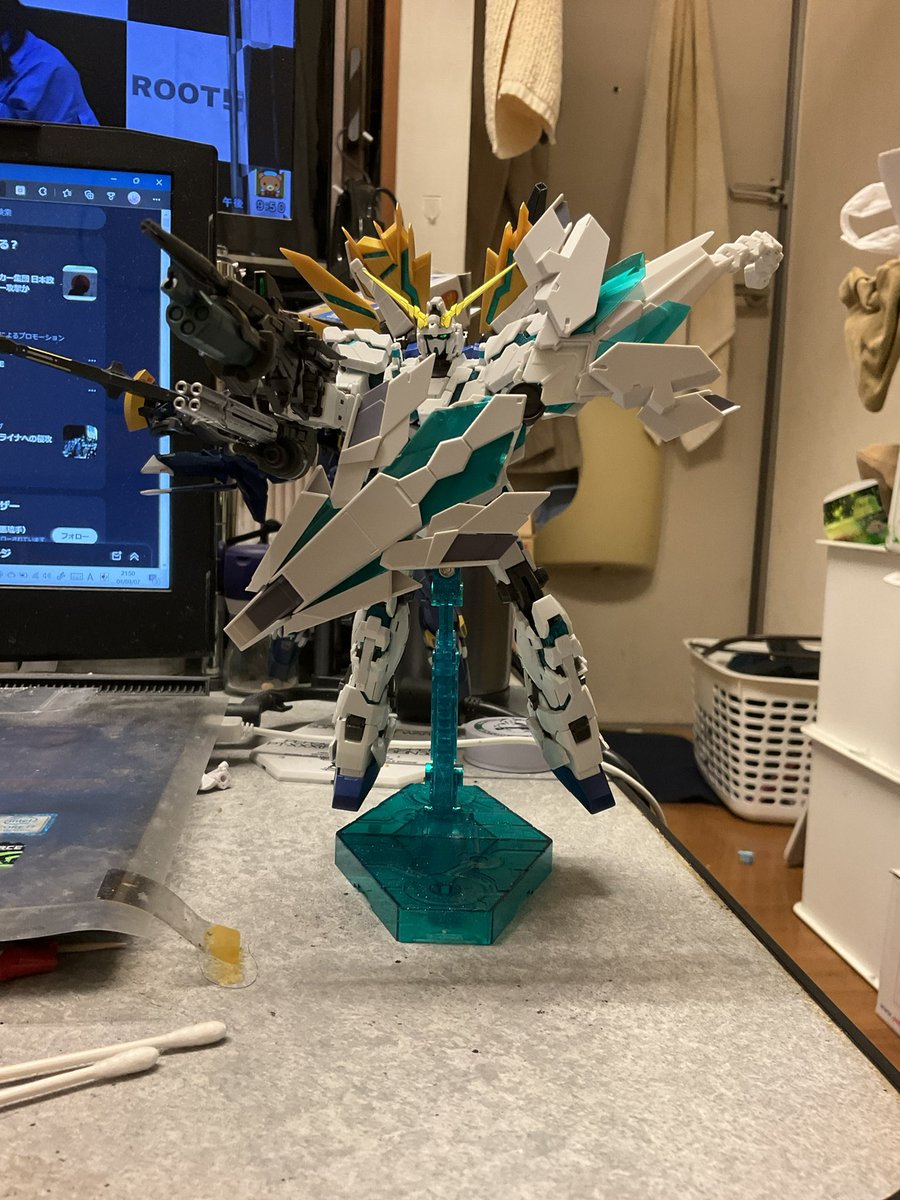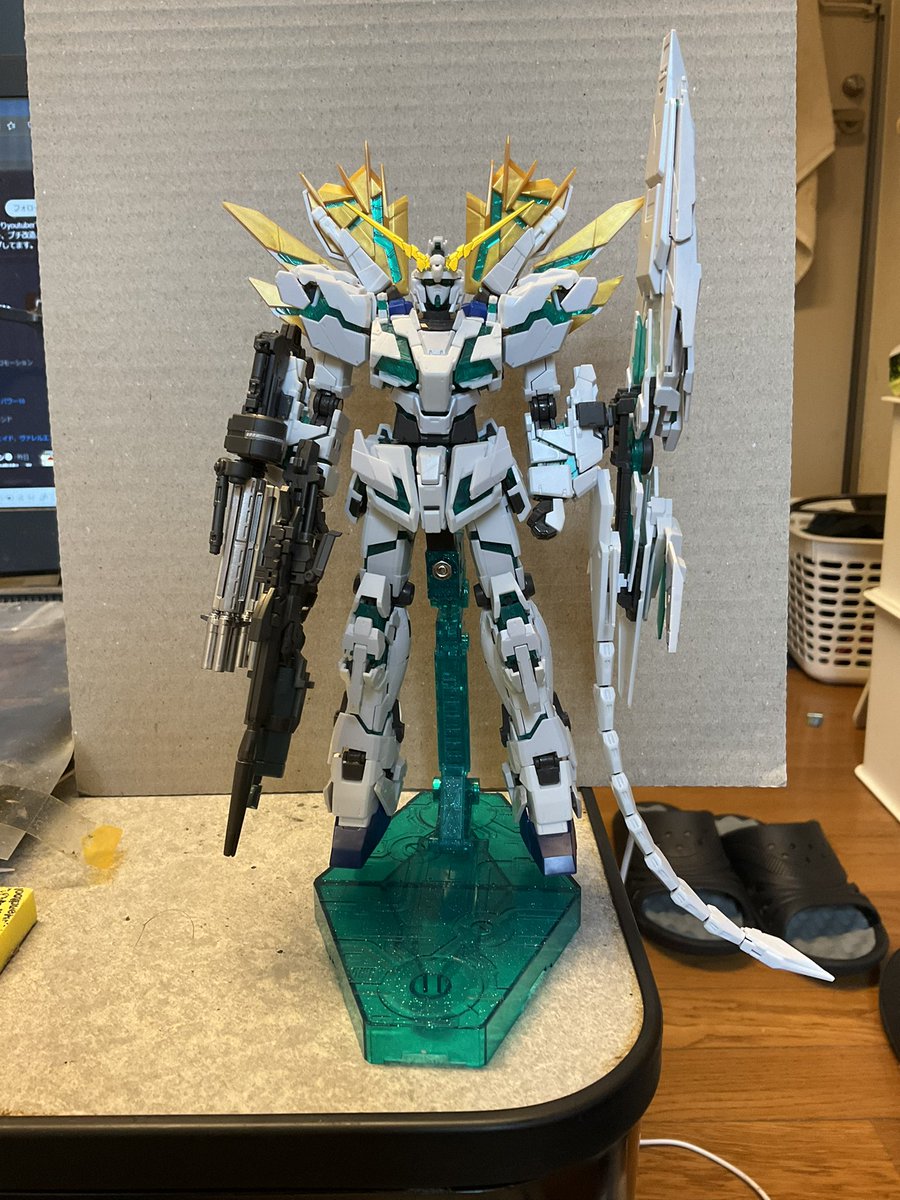 RGユニコーン素組出来上がり! やっぱサイコフレームといえば緑ですね、みていて落ち着く(*´ω`*) さてクイズです!これ一体作るために何種類のユニコーンのパーツ使ったんでしょうか! #ガンプラの画像を貼るとRTされると聞いて #ガンプラ #ガンプラ好きとつながりたい