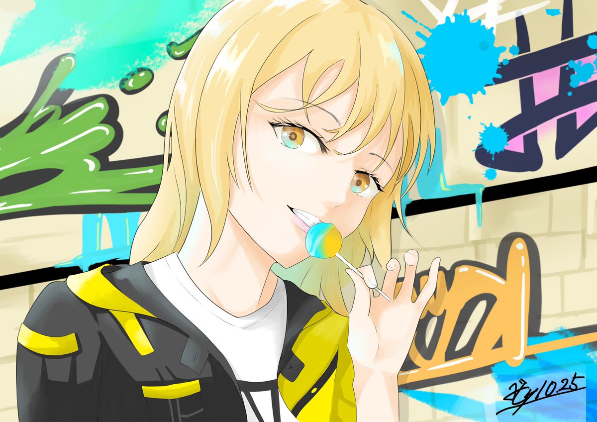 「Pop Candy」 さいとうなおき先生の素材写真を使用して描いてみました〜、明るくて少しヤンチャな女の子 #パルミー超自撮りイラコン #イラスト #オリジナルイラスト #創作イラスト #イラスト好きさんと繋がりたい #絵柄が好みって人にフォローされたい