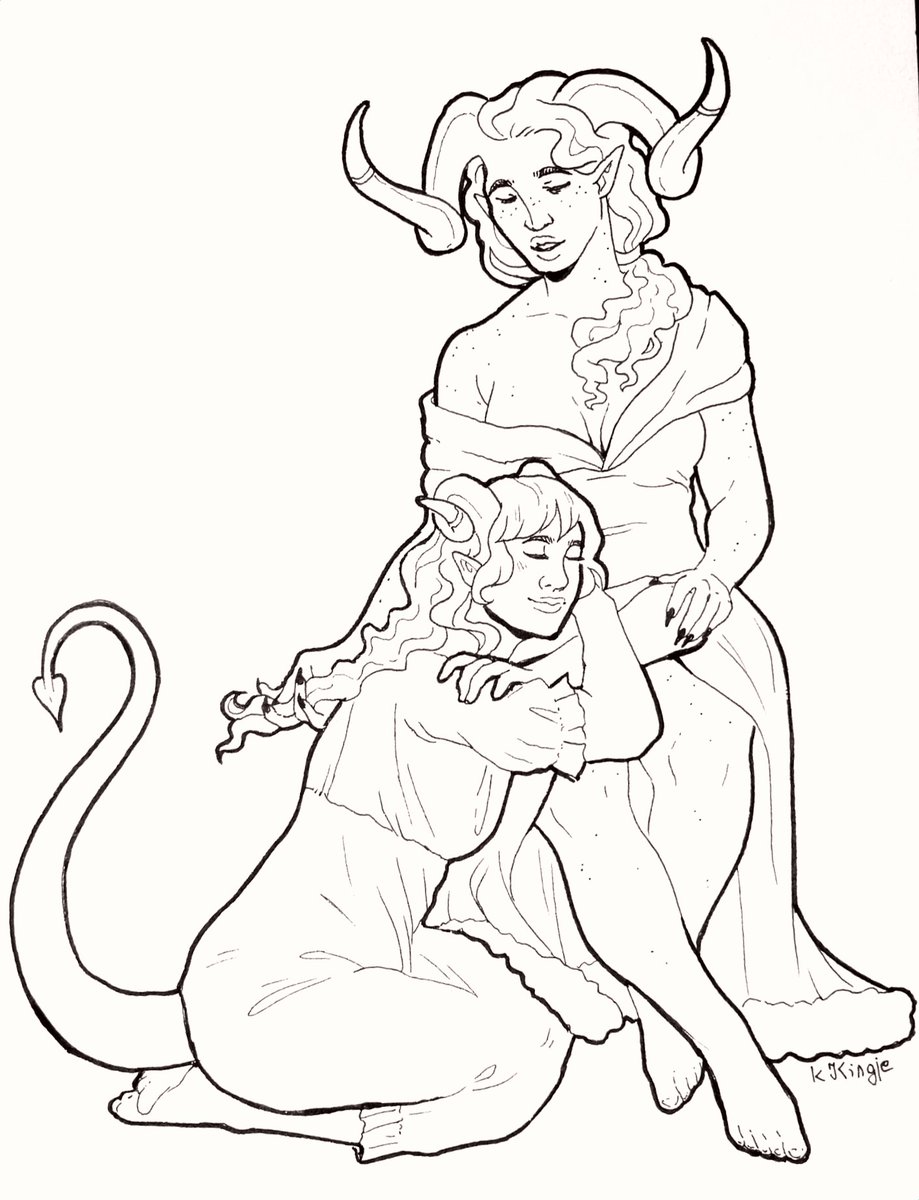 DAY 11 of #Inktober Jester with her mom Marion Lavorre ❤ #criticalrolefanart @matthewmercer @LauraBaileyVO Amazing reference picture by @AdorkaStock #drawtober #inktober2021