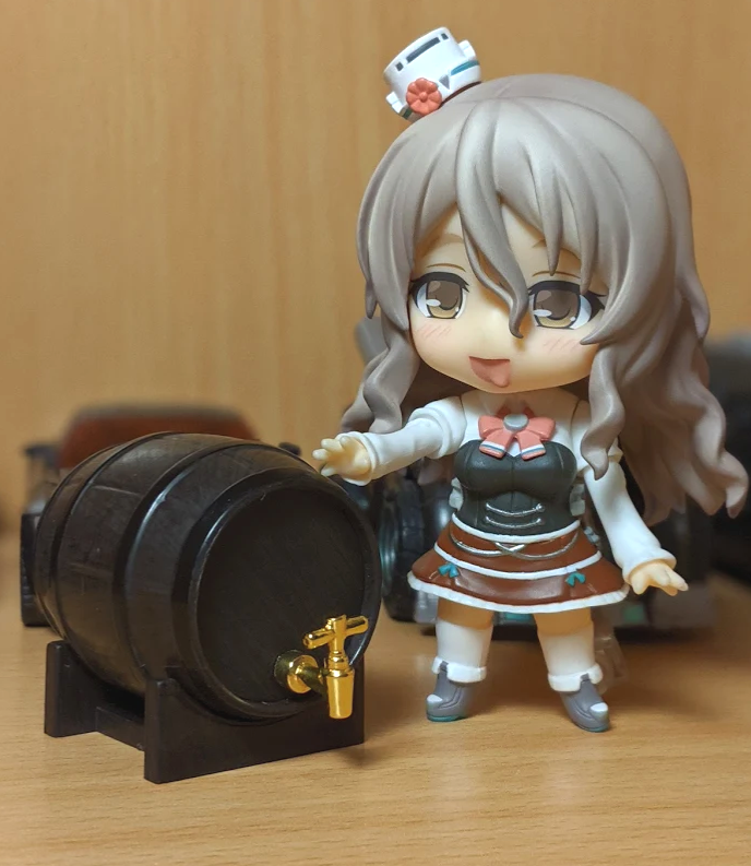 ホテルのガチャガチャコーナーにあった酒樽がポーラさんに似合いそうだったので回してきました。大きさもぴったりです。