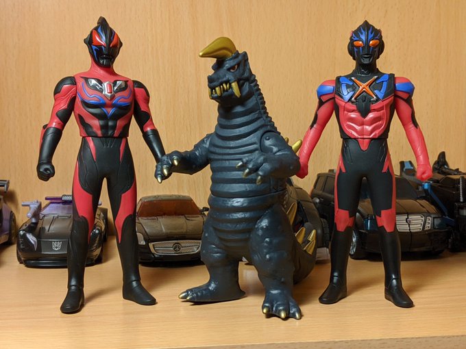 6 24 ソフビのジードダークネスとエックスダークネスとブラックキング たまたま見かけて買いました。闇トラマン系がどんどん増えるのはいいことです。 20/02/19 18:38