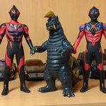 ソフビのジードダークネスとエックスダークネスとブラックキング たまたま見かけて買いました。闇トラマン系がどんどん増えるのはいいことです。
