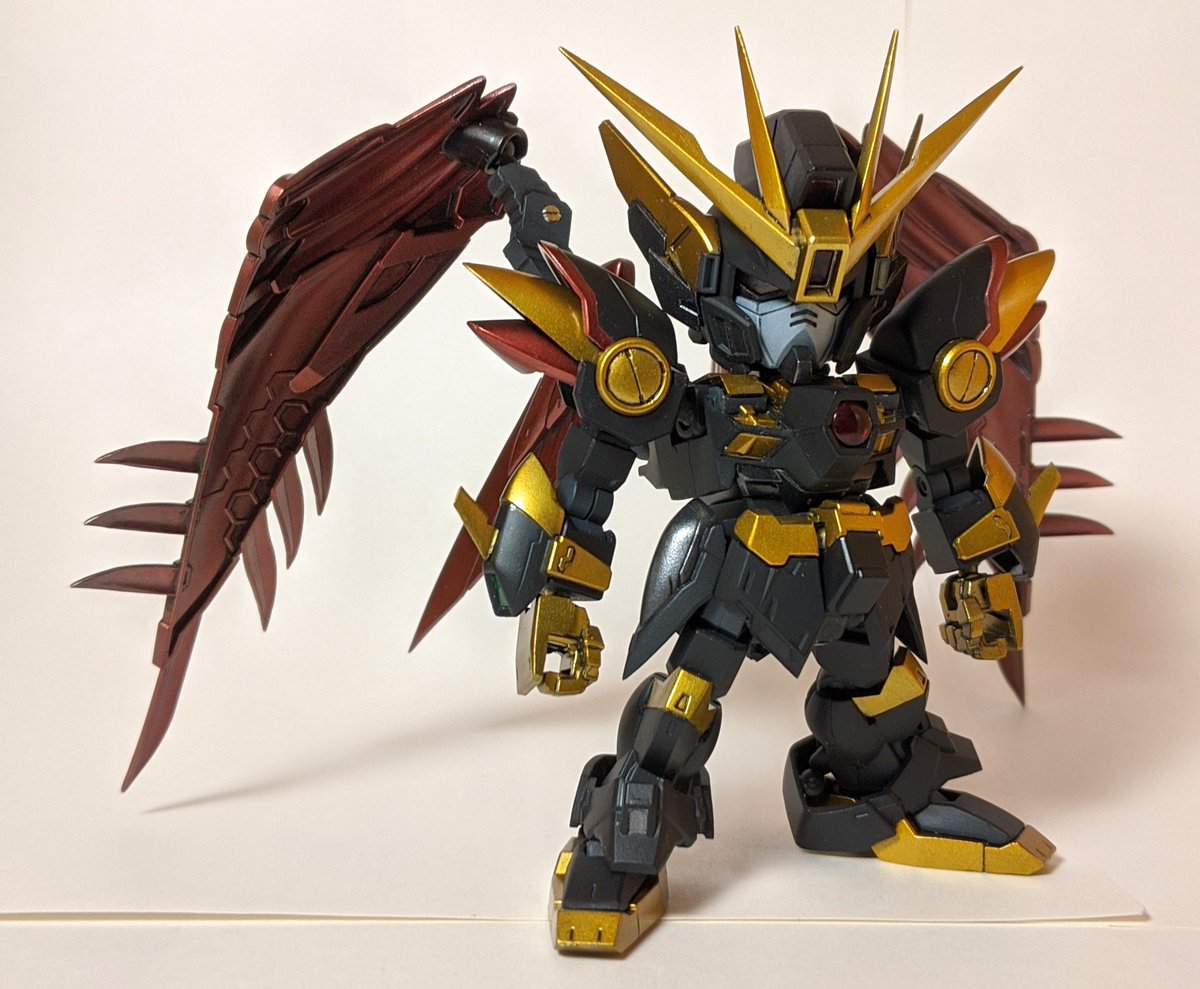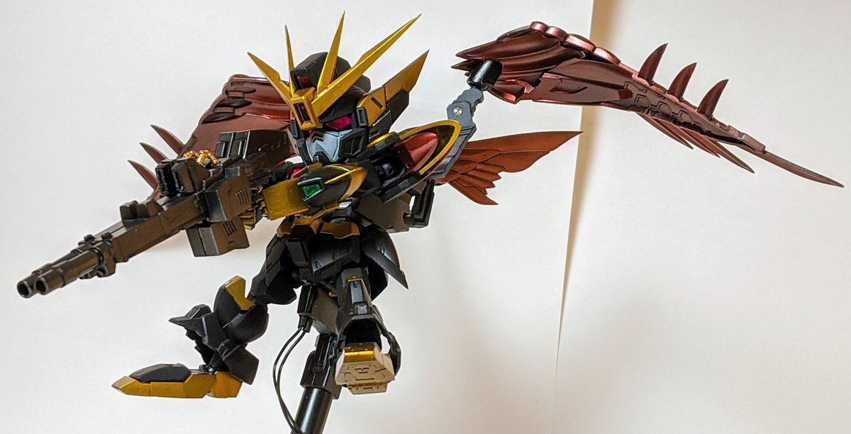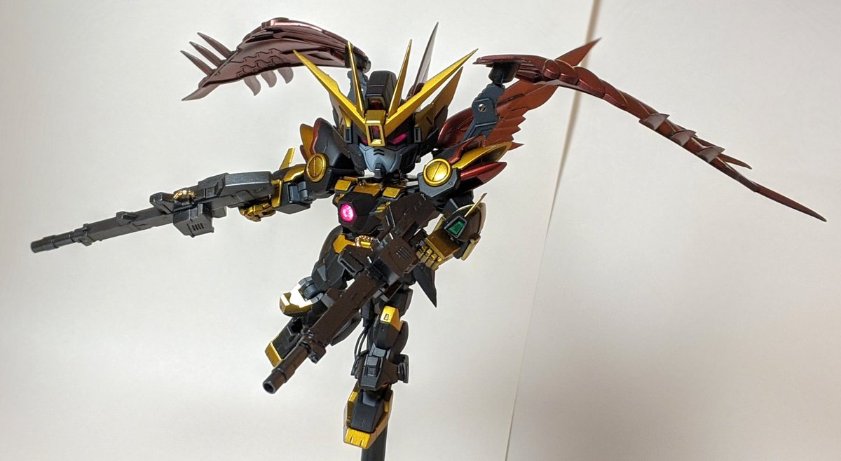 友人モデラーのブルーレット奥田君(@bluelettokuda)に依頼して、ブチかっこいいウイングゼロリベリオンを作ってもらいました! 使用キットはCSウイングガンダムゼロ。塗装の他各部シャープ化、肉抜き埋め、センサー電飾化、マシンキャノン展開等、様々な改修をしてくれています。家宝にすっぺー!