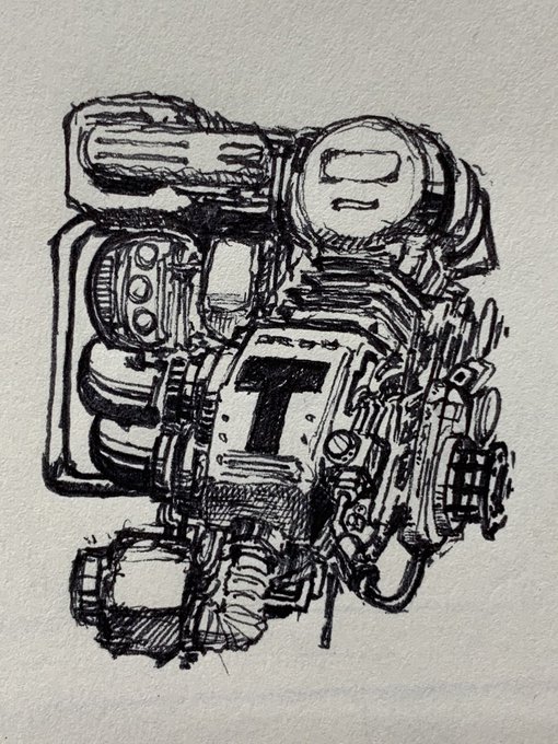 らくがき 機能とか無視でそれっぽいメカを適当に描くの楽しい #ペン画 #らくがき