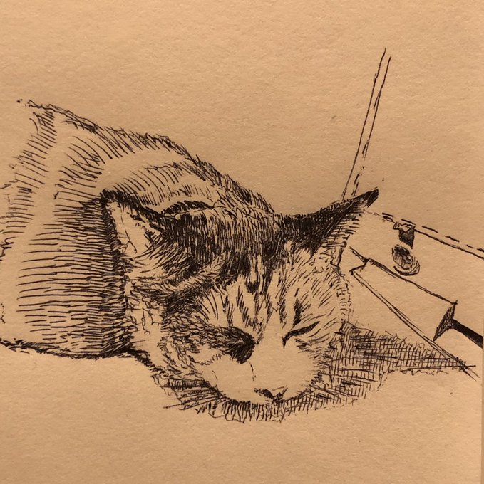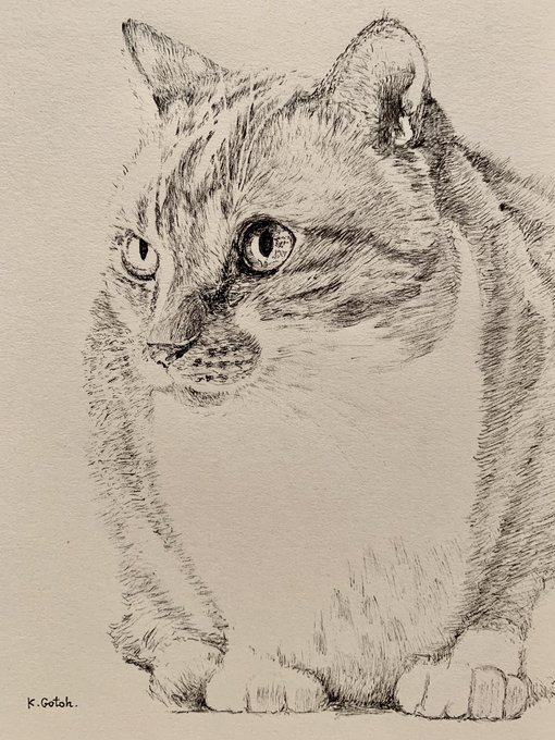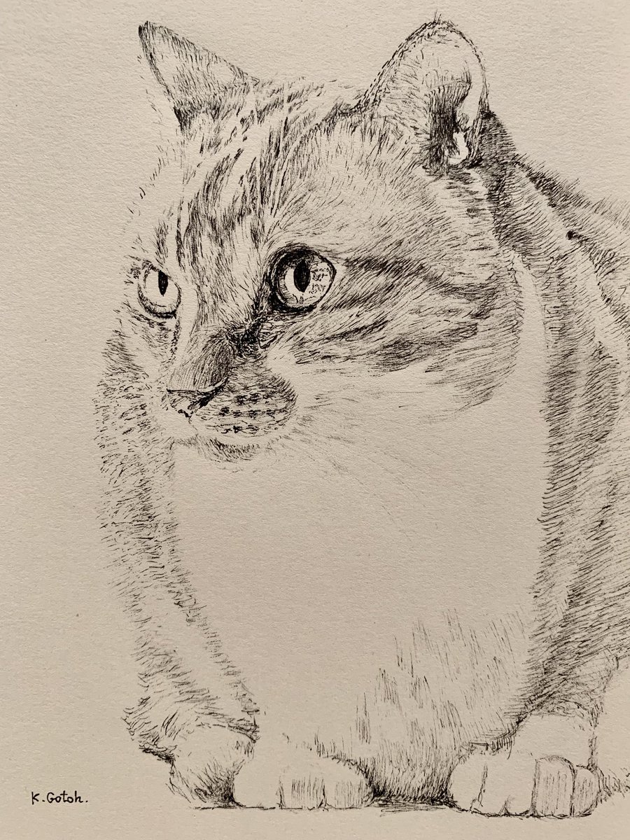 親戚の家の猫ちゃん #ペン画 #イラスト #drawing