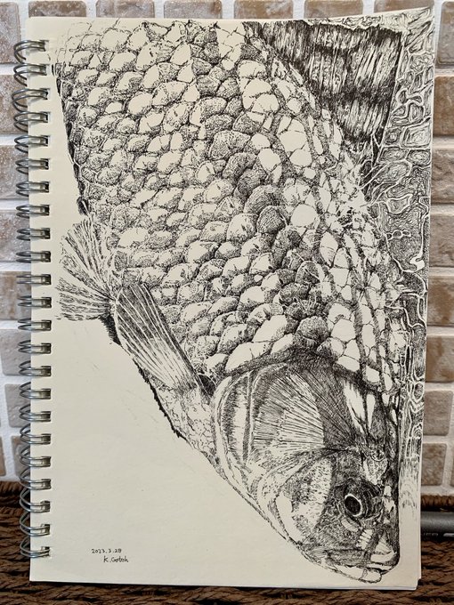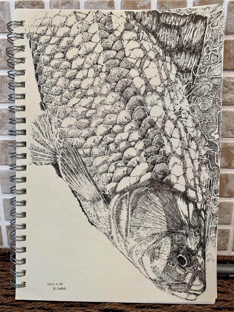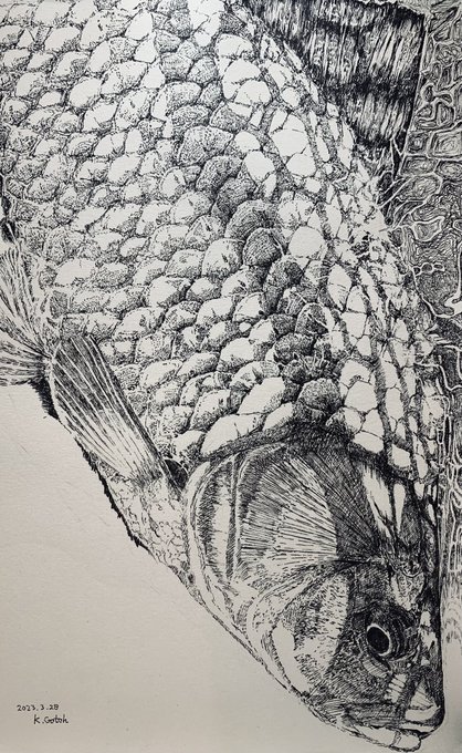 1 7 過去絵 チヌ0.25ミリボールペン #ペン画 #drawing #黒鯛 #チヌ 23/03/07 00:01
