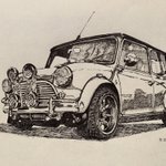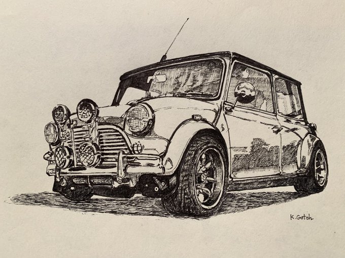 ミニかわいいよね #ペン画 #ローバーミニ #ミニクーパー #クラシックカー