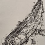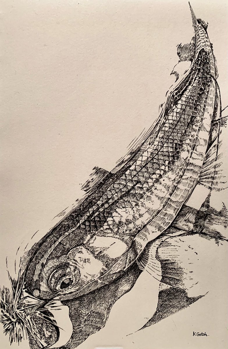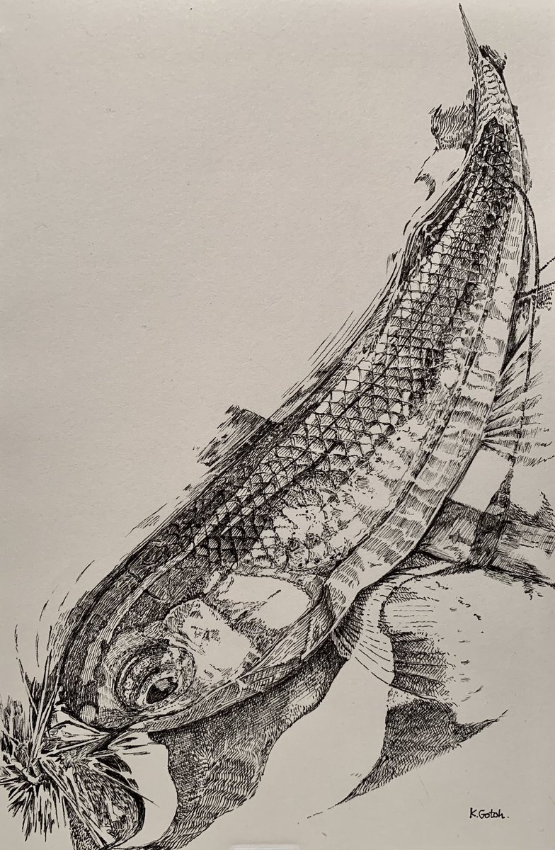 7 76 毛鉤に食いついたオイカワ #ペン画 #細密画 #テンカラ 23/04/08 21:15