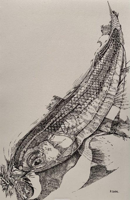 0 6 ここ一週間ペンを握れてなかったので ささっとクチボソです #ペン画 #スケッチ #クチボソ #モツゴ 23/04/26 22:33