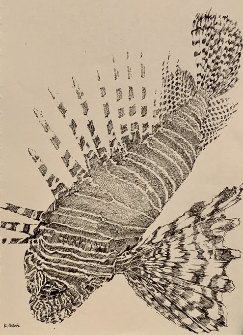 ミノカサゴ #ペン画 #イラスト #drawing