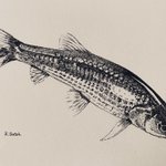 毛鉤に食いついたオイカワ #ペン画 #細密画 #テンカラ