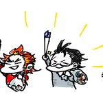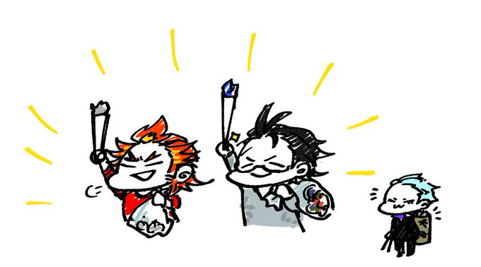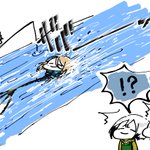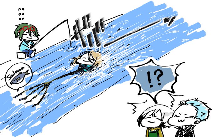 > 渦斗さんこんにちは。もしよろしければ、川をどんぶらこと流れていくクリスさんとそれを見て驚く雨彦さんと想楽くんをミニキャラでお願いします! #odaibako_KmgTktz お題ありがとうございました!!どゆこと…? odaibako.net/detail/request…