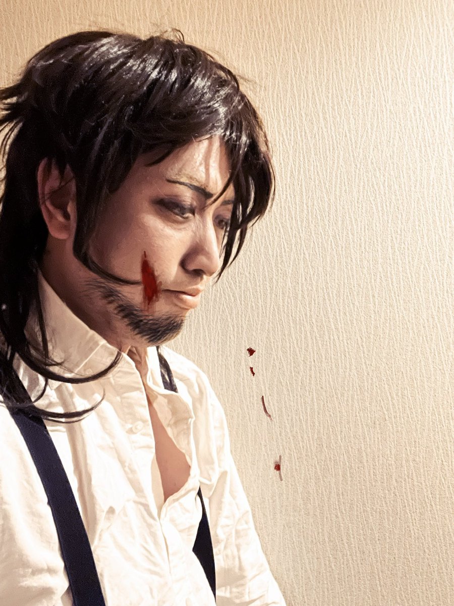 フトゥー博士の簡易メイクとコス(^◇^;) 尾形のウィッグ使ってみたけど、やはり尾形様だから変やね(⌒-⌒; ) #コスプレ初心者