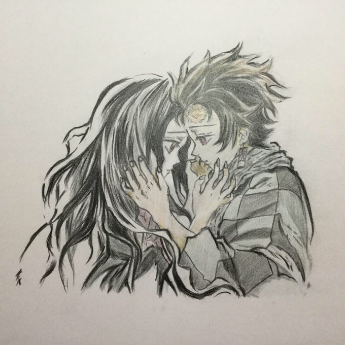 何とか描きあげました。 優しさと仲良さ🍀 #鬼滅の刃 #竈門炭治郎 #竈門禰豆子 #鬼滅の刃イラスト