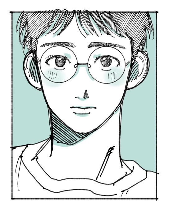 昨日寝ながら描いた👓せんぱい。