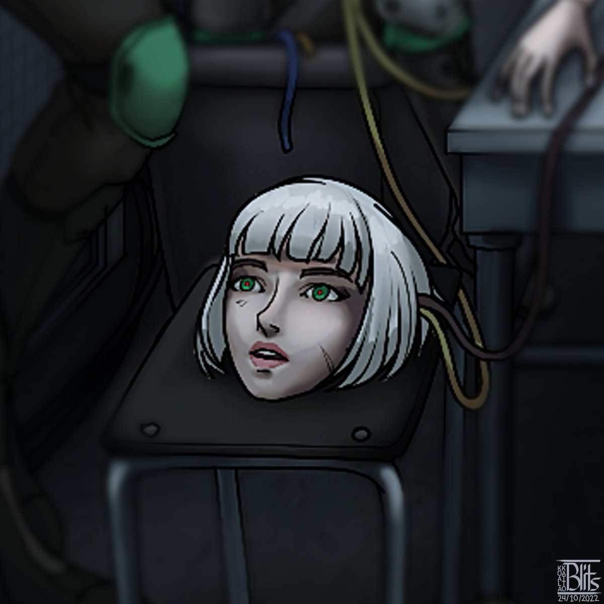 Handygails Workshop(Commission) pt.1 Commissioned by Erntoron - The recent operation left most of the Luana squad heavily damaged but Handygail and her partner Andrea would make sure that the androids would be fully operational once more. #drawing #digitalart #Commission