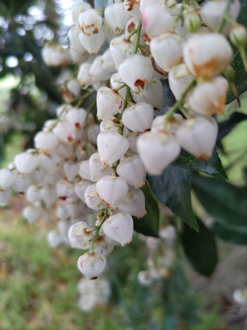 アセビとドウダンツツジが咲いてた。 携帯のカメラ、うまくピント合わせられない。