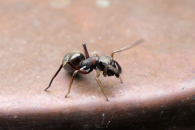 43 172 今日見たアリ……ではなくクモ。前脚を触角っぽく動かすとこが芸が細かい。 22/04/25 22:42