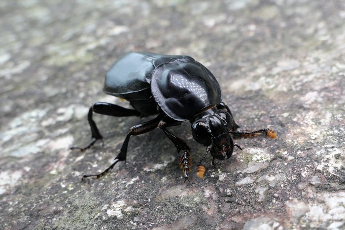 28 137 昨日コンビニに行く途中見つけたクロシデムシ。地味だけど前胸背板や鞘翅の造形がかっこいいのだ。 22/05/06 15:48