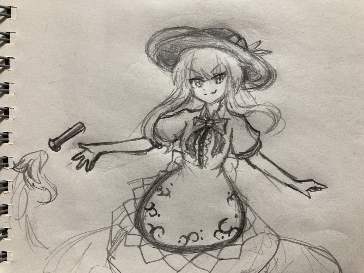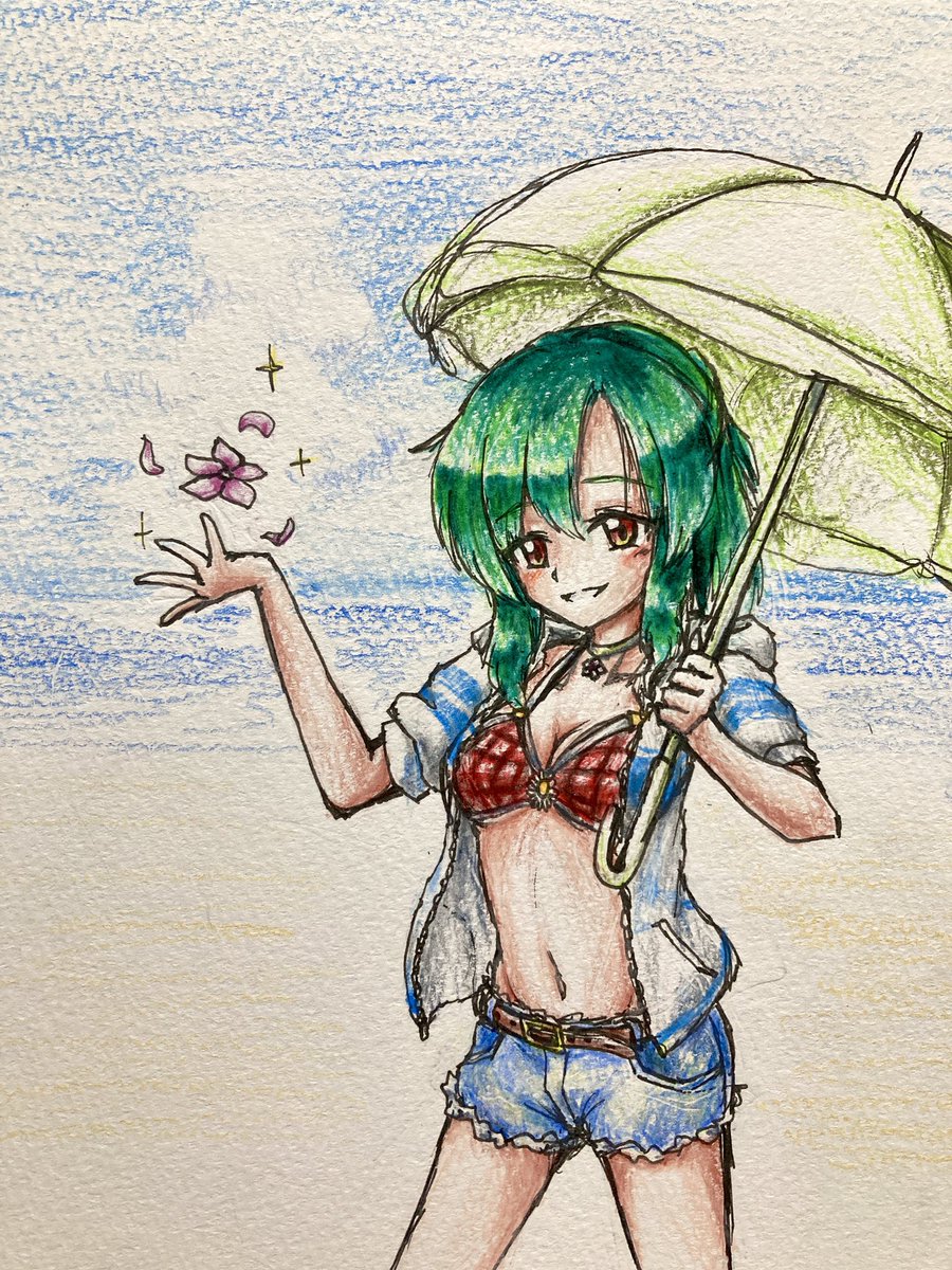 #深夜の真剣お絵描き60分一本勝負 #風見幽香 10周年とのことで久しぶりの参加!!私が一番好きなのはモチのロンでゆうかりん!!! 色鉛筆久しぶりすぎて色々粗いけどちゃんと1時間で仕上げられた、よかった!!!!