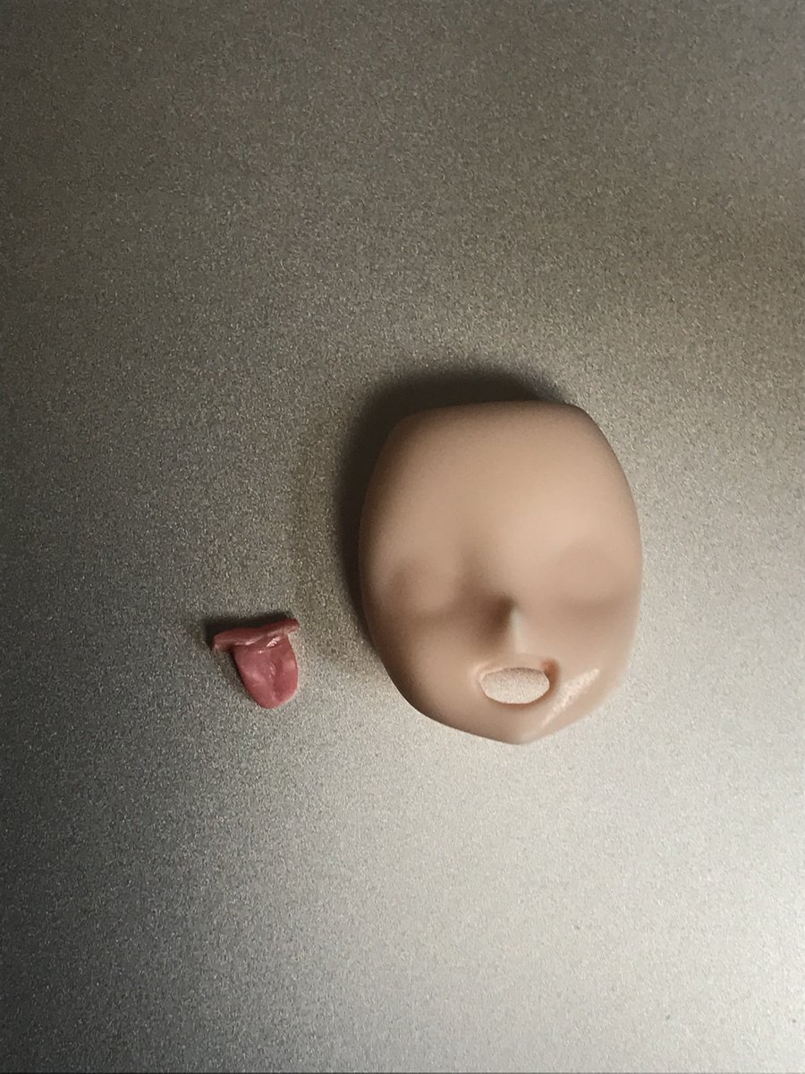 でけた。「バーゼ、新しい顔よっ!」 タンポなし顔パーツで舌出し顔を作ってみました。白ランナーを刻んで歯も付けています 今回も相河愛花のAランナーから上タンをゲット、コレ一枚で何人分取れるんやろね ドールアイはめだまや(@ToyboxMzgk )さんのやつです #メガミデバイス