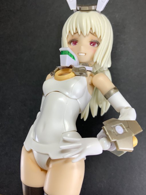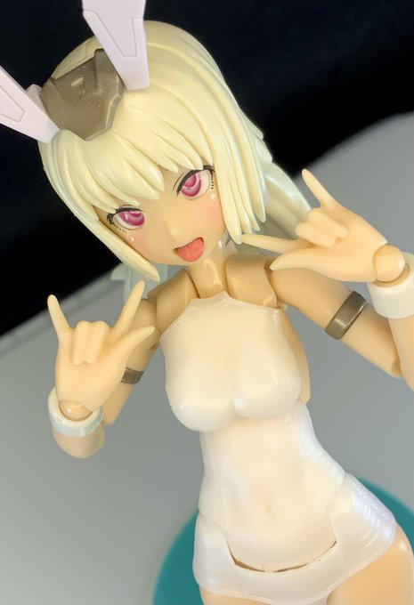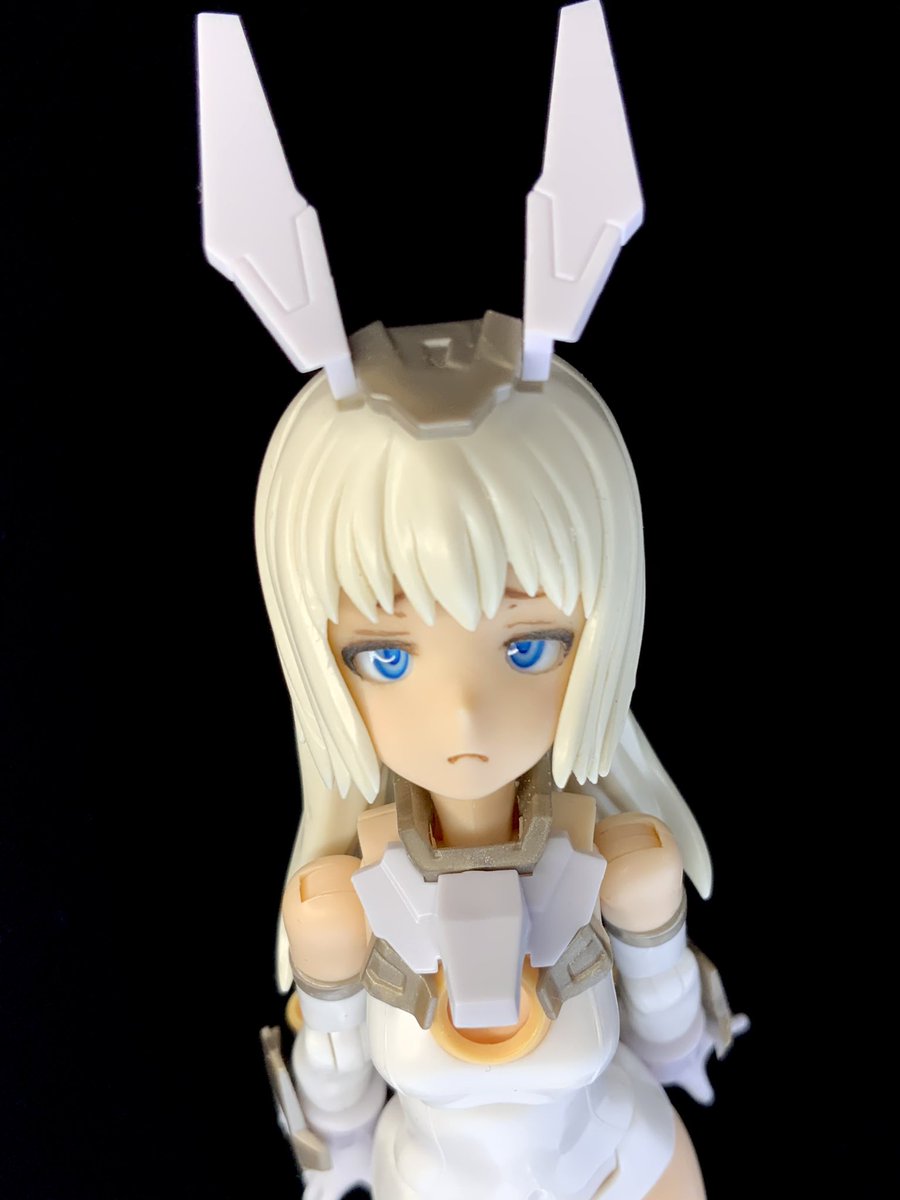 武装付きヘッドの基部に肌ランナーくっつけて長耳作った ディテール甘いのは私の技量不足… コトブキヤ製品のランナーは太さがちょうど良くて何かと使いやすい #メガミデバイス