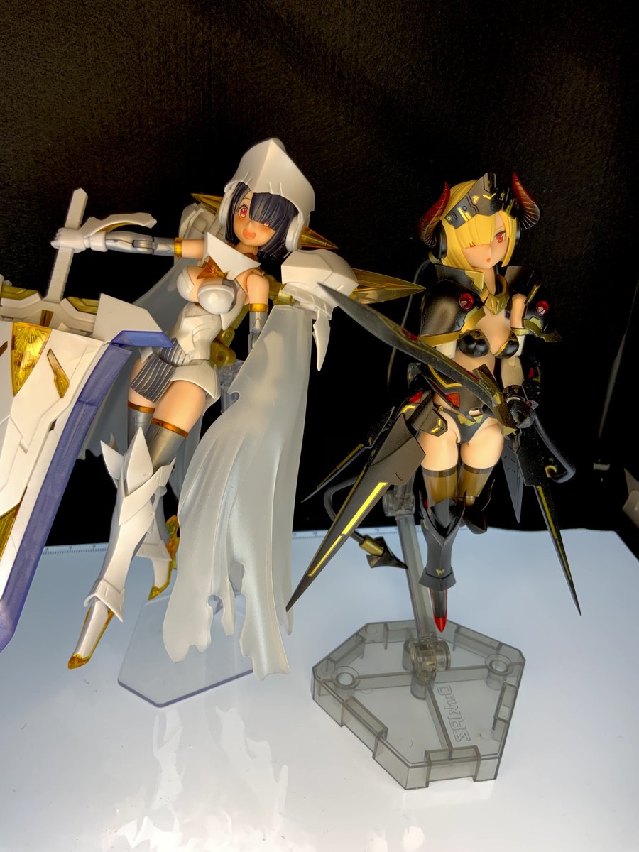 6 24 素組みブライド、着任済みの黒騎士さんとツーショット 黒騎士はランチャーベースに改造キットとDAソフィアの角を混ぜた奴 #メガミデバイス 21/12/27 23:03