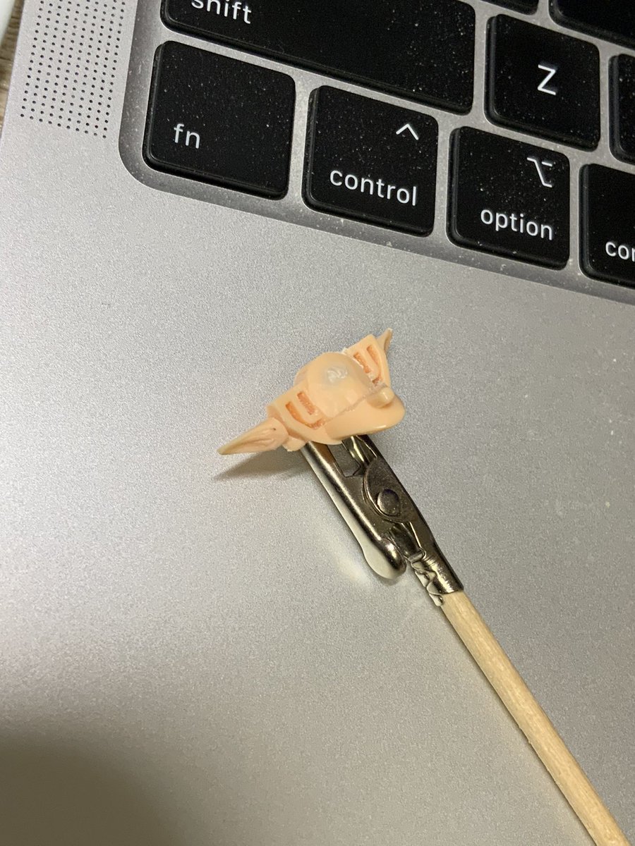 6 43 武装付きヘッドの基部に肌ランナーくっつけて長耳作った ディテール甘いのは私の技量不足… コトブキヤ製品のランナーは太さがちょうど良くて何かと使いやすい #メガミデバイス 22/07/17 14:40