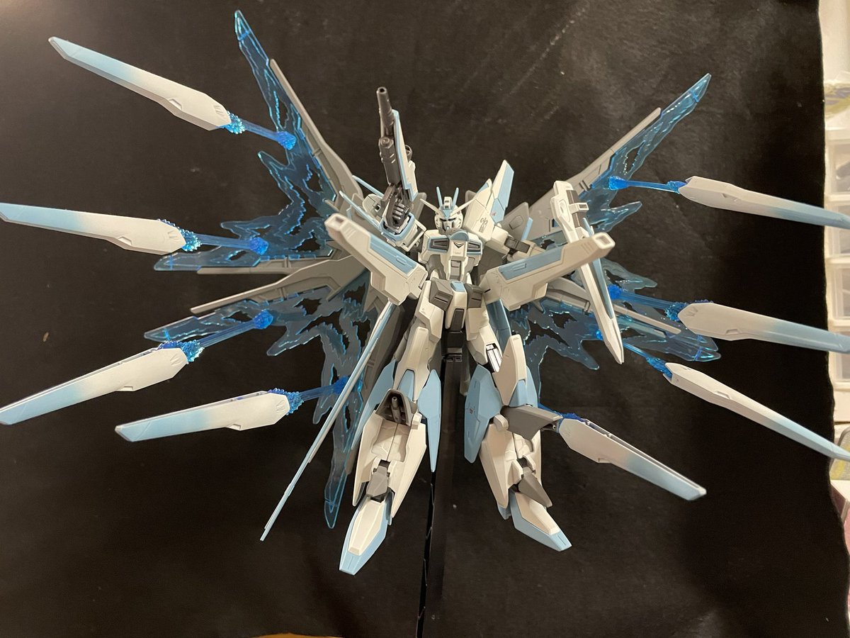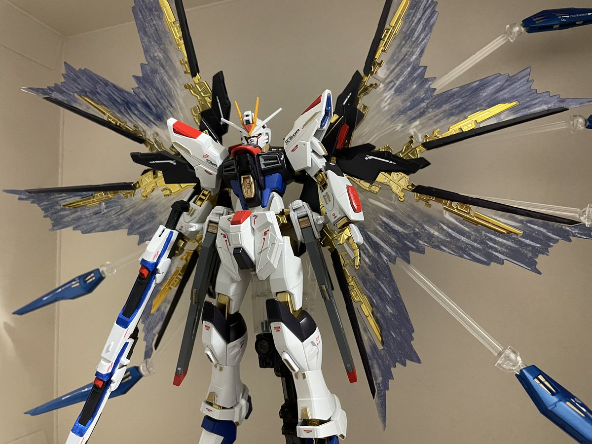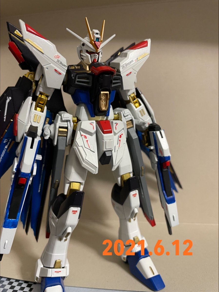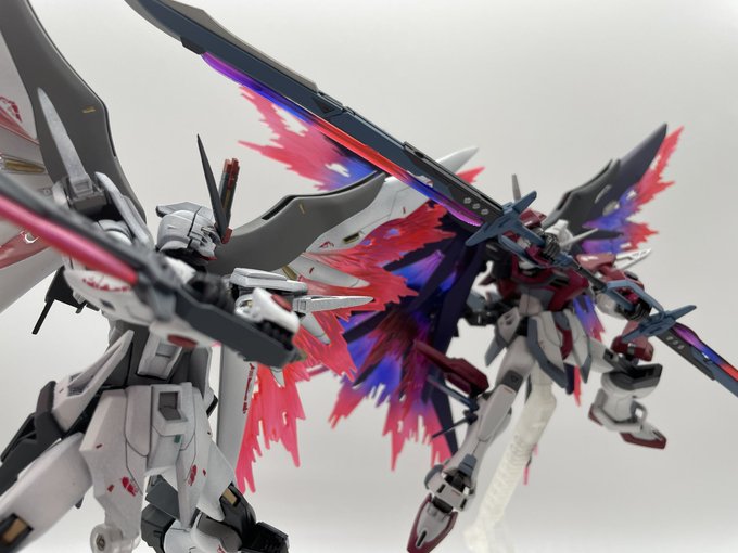#今月作ったプラモ晒そうぜ 今月は初めてのエアブラシ塗装したストフリとエクストリームの2機(ちゃっかり作ってました) 前に作ったデスティニーと並べたい一心で微改造とエアブラシ頑張った甲斐がありました(👍
