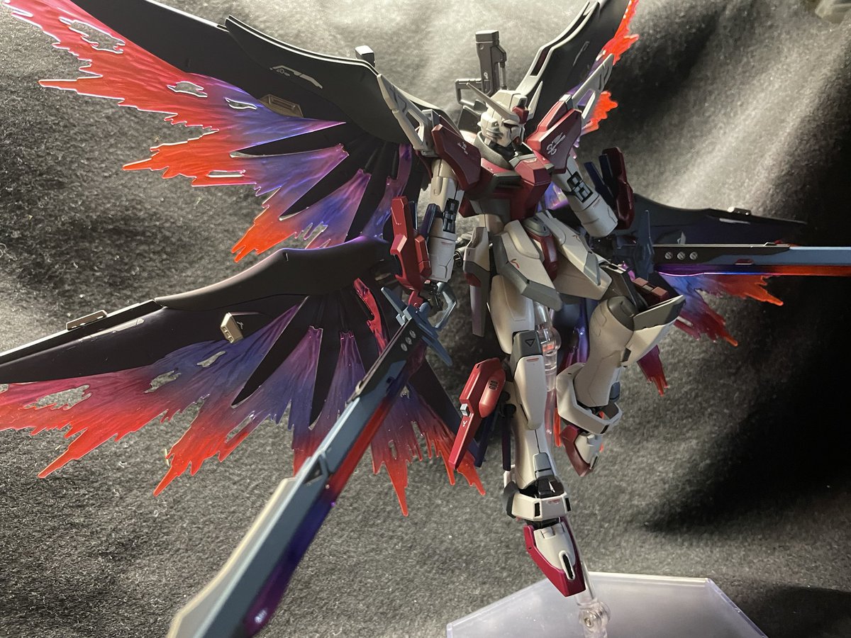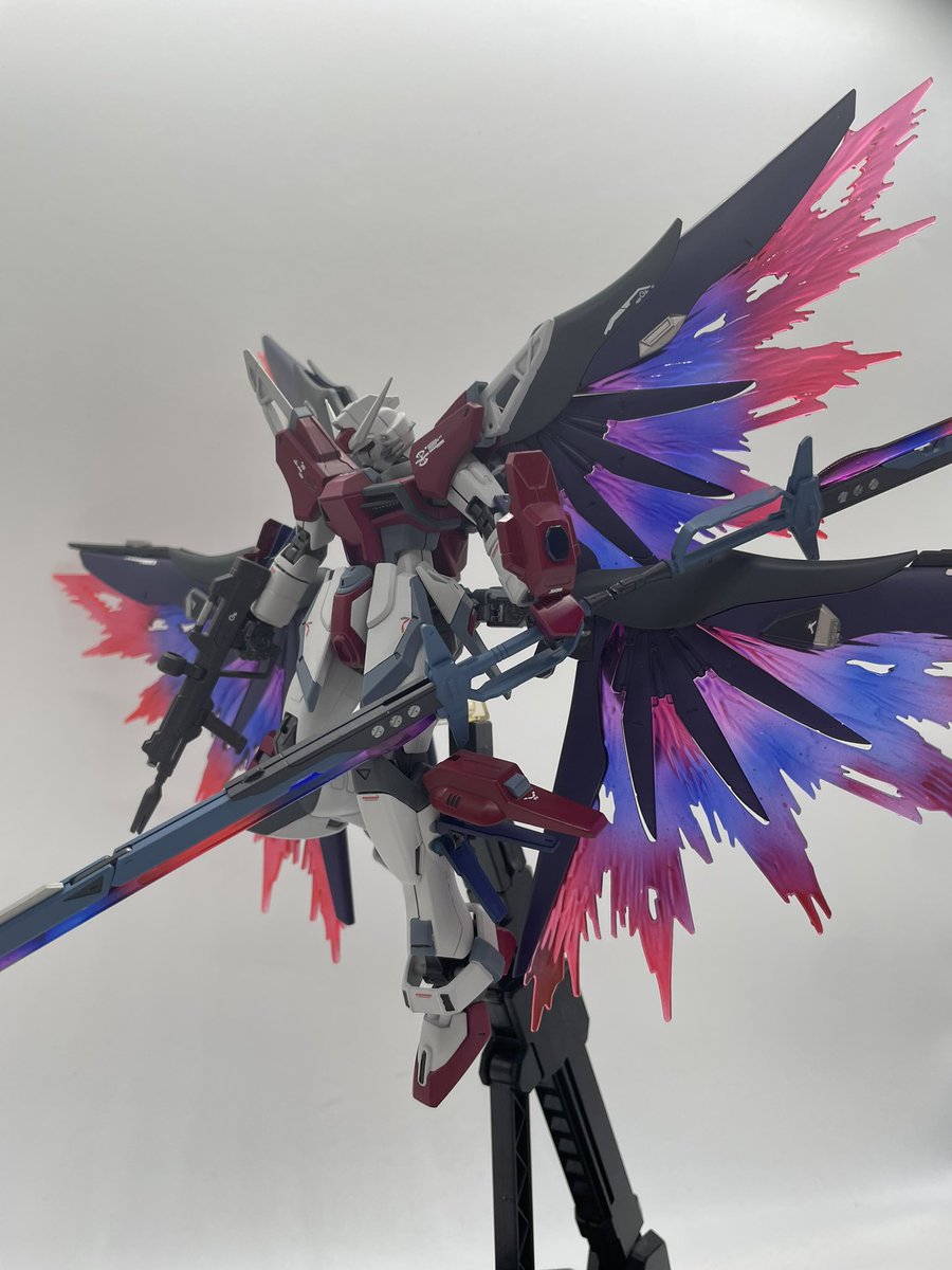 ZGMF-X42E デスティニーノワール・ファントム 完成です! デスティニーにノワールストライカーを装備した機体です。 カラーリングもストライクノワールによせて塗装しました ↓ #ガンプラ #ガンプラの画像貼るとRTされると聞いて
