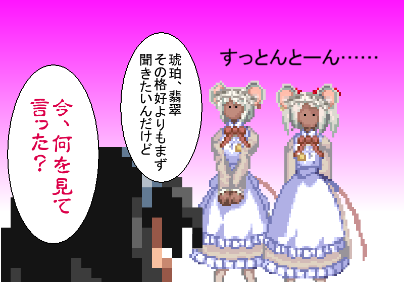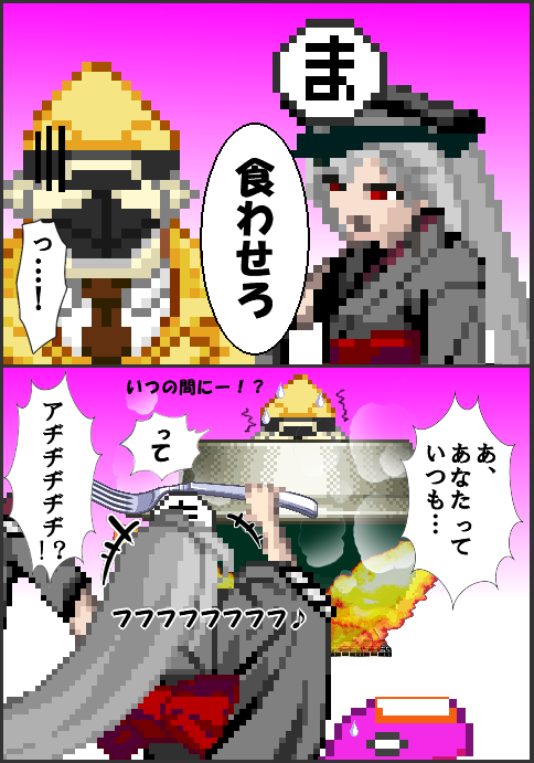 少々過激ですが、秋葉様誕生日用四コマ漫画の副産物。単体でこちらに先行公開です(`・ω・´)ゞ 四コマ漫画と副産物は後ほどピクシブに。 ちなみに絵画として描いたもので、手掛けたのは先日作った改変ドットのケイネス画伯(という設定) #遠野秋葉生誕祭2022