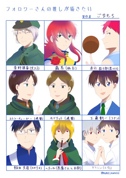 大変お待たせしましたー!!!! 普段同じキャラばっかり描いてるので、すごい新鮮で楽しかったです!リクエストくださった方々ありがとうございました!! #フォロワーさんの推しが描きたい
