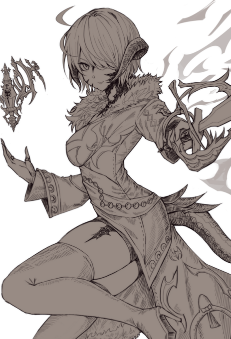 0 3 #FF14イラスト 之前约的龙娘稿图 23/04/07 18:28