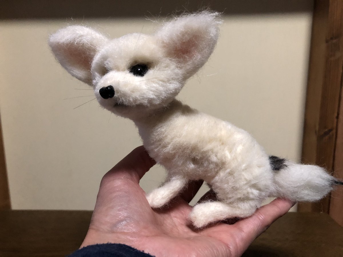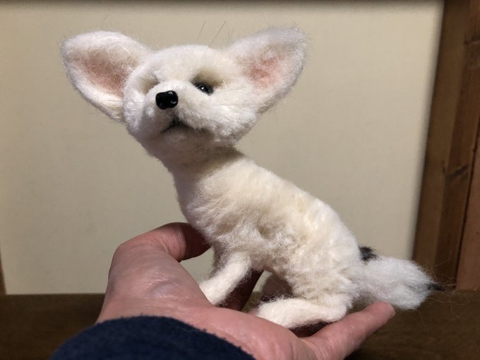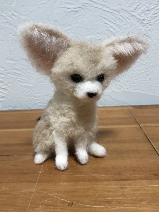 チビ見てたら作りたくなって 羊毛フェルトで作ってみました😊後ろから見たらそっくりに出来ました😆 #フェネック #フェネックキツネ #fox #fennecfox #ふぇねすたぐらむ #フェネックすきと繋がりたい #フェネック赤ちゃん #羊毛フェルトフェネック赤ちゃん #羊毛フェルト