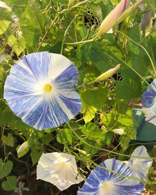 母の朝顔 夏も終わりのほうに種を蒔いたんだがツルと葉ばかり伸びて絡んでいっこうに花が咲かなかったんだが9月も半分すぎてついに花開く! けっこう粋な柄で大コーフン! よかったね #イラスト #illustration #tokyo #朝顔 instagr.am/p/CjPTqYyrz3T/