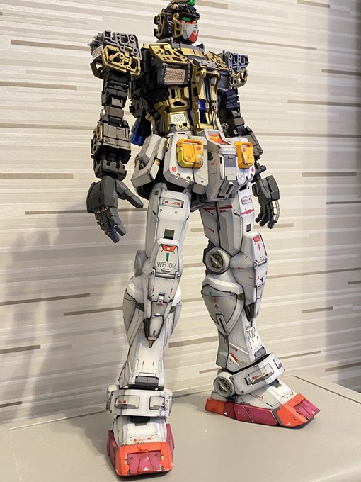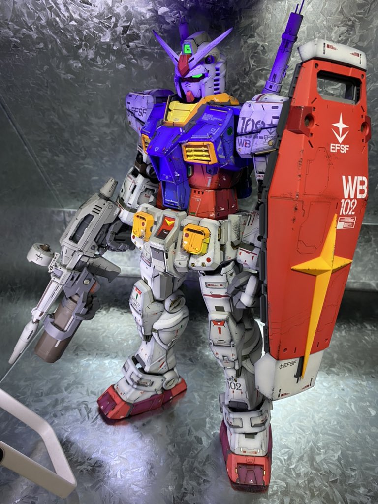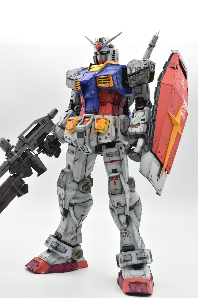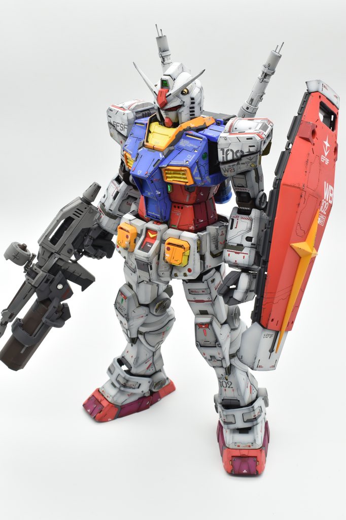 PGU78ガンダム完成です(^^) シールド両脇の白いパーツは引っ越しの際にランナーごと捨ててしまったのでパーツ請求中です(^^; #PGUガンダム #ガンプラの画像貼るとRTされると聞いて #ガンプラ好きと繋がりたい