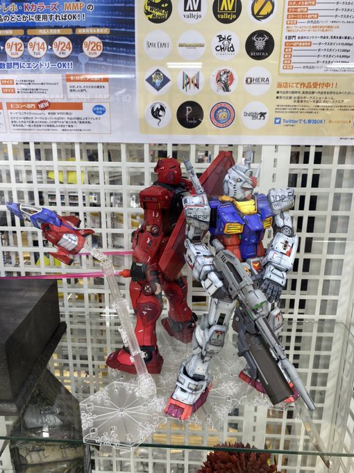 ボークス仙台店にてコンテスト出展完了です(^^) シャアとアムロが共闘したらというテーマで作製しました 引き立て役でコアファイターにセイラさんを乗せてます♪ #ガンプラ #ボークス #ガンプラの画像貼るとRTされると聞いて