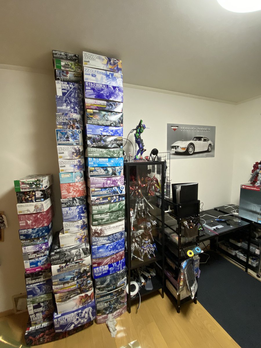 塗装ブースを新しくしてから作業デスクが圧迫してたのでデスクを買い足してついでに部屋の模様替えもしました(^^) スッキリして作業が捗りそうです♪ 相変わらずイスがありませんがイスなんて飾りです 偉い人には以下略 #ガンプラ好きと繋がりたい #ガンプラの画像貼るとRTされると聞いて