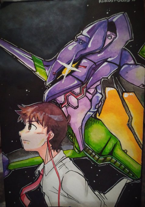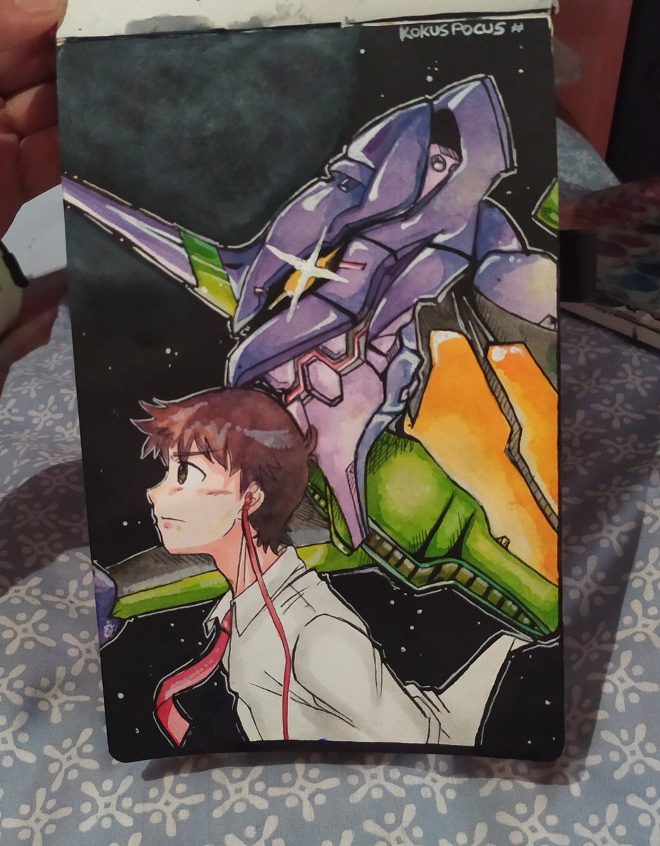 #Inktoberday14 #inktober #evangelion #eva01 #shinji #watercolor pls dnt repost but if uou like my artwork, plssss give me a RT 💚💜 @ApoyaAlArtista @ConoceArtistas @Ayuda_artista @TheArtistHelp