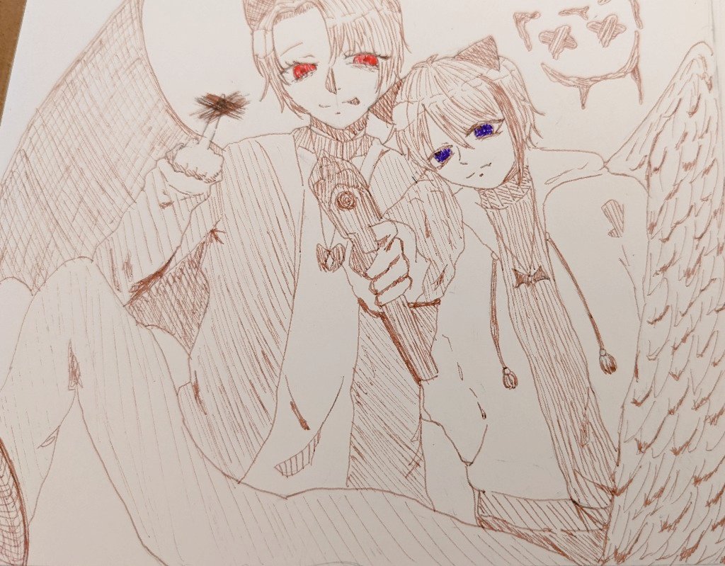 「俺らに勝とうなんて バカじゃねぇの?」 天使と悪魔 #いぬうどふーふ #イラスト #アナログ #絵描きさんと繋がりたい #イラスト好きな人と繋がりたい #創作イラスト #絵描きさんと友達になりたい #フォロバ100 #拡散希望 #絵描きさんとつながりたい #オリジナル #絵師強制ボタン