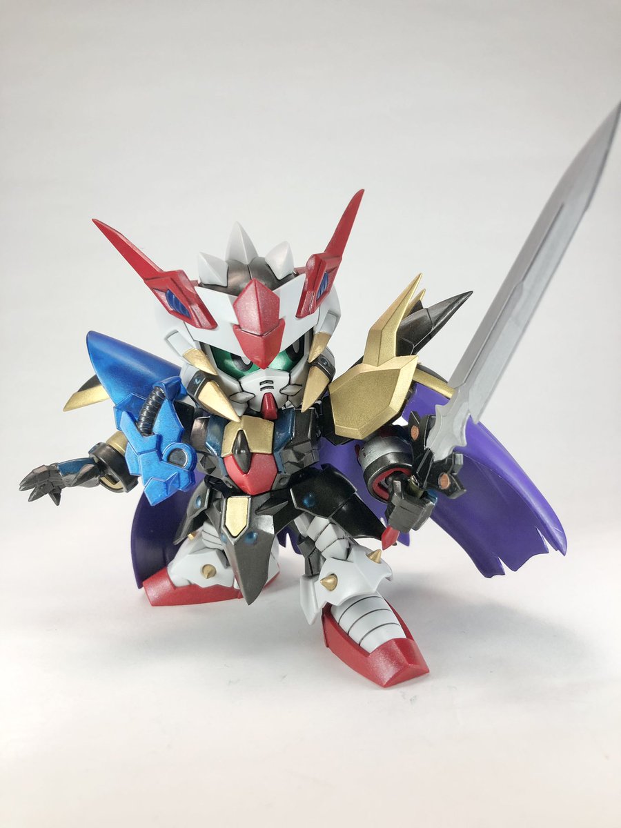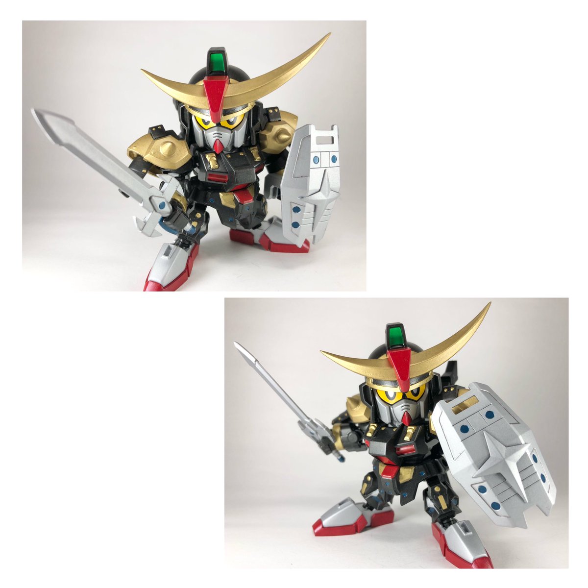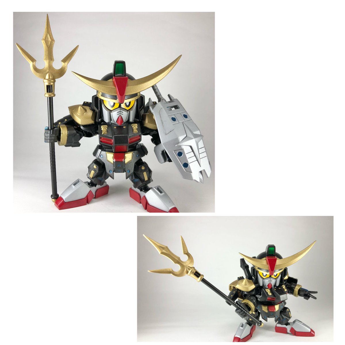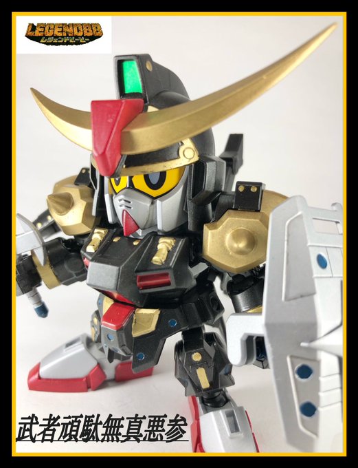 レジェンドビービー 武者頑駄無真悪参 完成しました🤗 ゴールドとシルバーは 缶スプレー塗装で 後は筆塗り部分塗装と 各部のシャープ化肉抜き穴埋め スミ入れ半光沢仕上げです! 結局…全塗装になりました😅 #ガンプラ #ガンプラの画像貼るとRTされると聞いて #ガンプラ好きと繋がりたい
