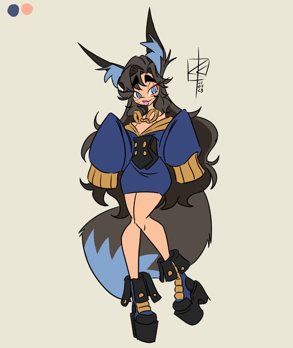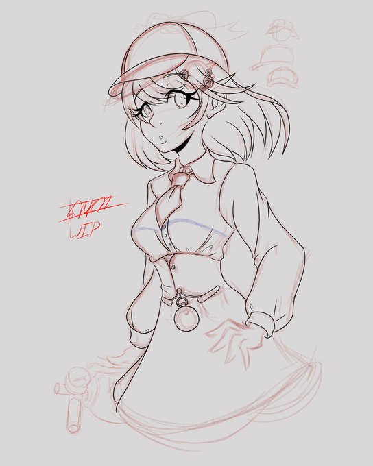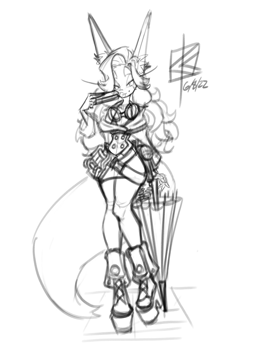 I think I've got a winning formula when it comes to this design. Other than the things on Konfi's toolbelt and the length of her skirt not much has changed. #animeart #mangaart #Konfi #originalcharacter #kitsune #clipstudiopaint #digitalart #digitalsketch
